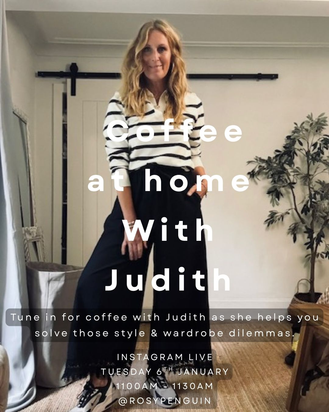 Tune into this Instagram LIVE where Judith will help you solve any of your wardrobe or fashion dilemmas. DM or email her in advance with what you need help with or simply join the LIVE and message her on the day.