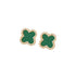 Green Clover Stud Earrings In Gold with Sparkle